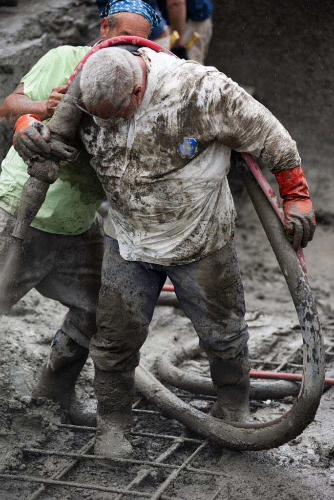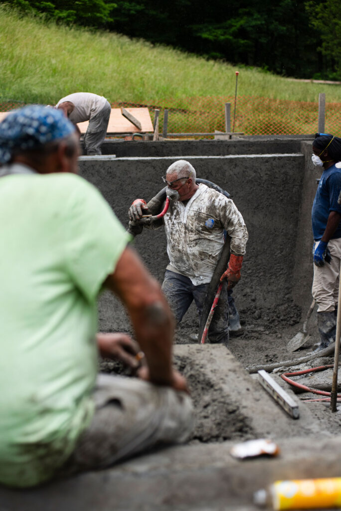 A Pool Shell Takes Shape As Concrete is Sprayed and Troweled
