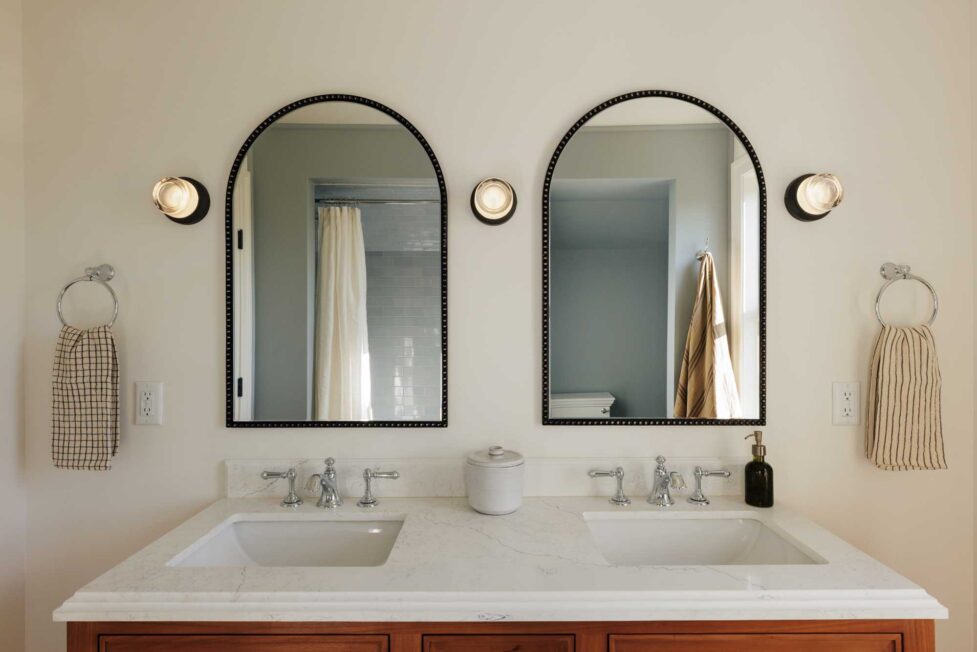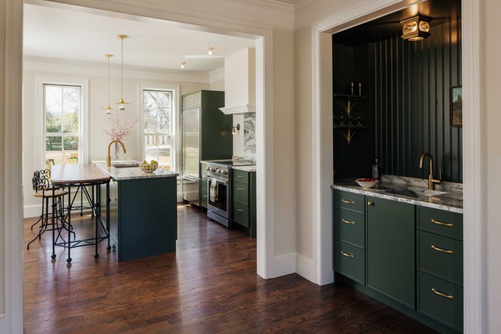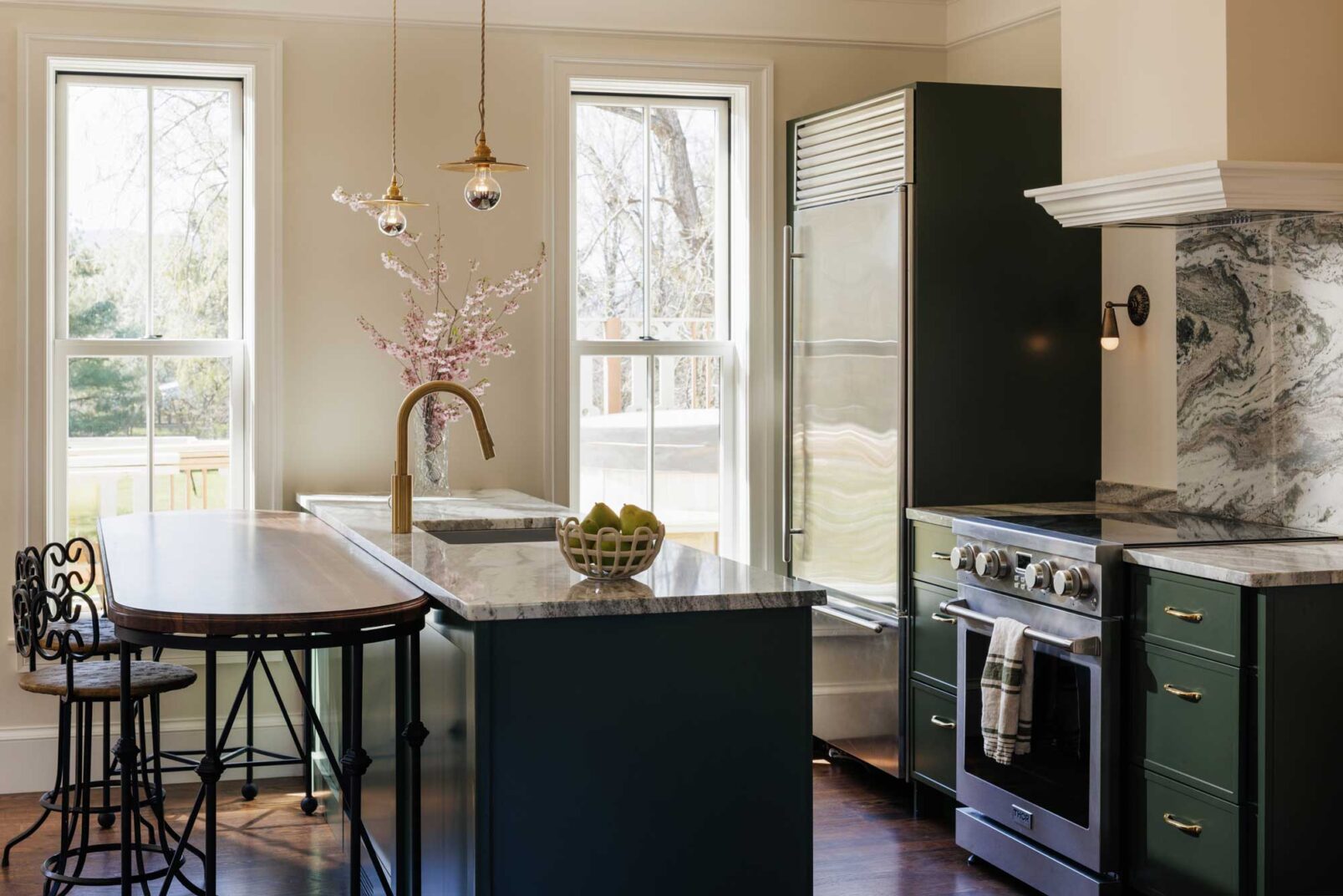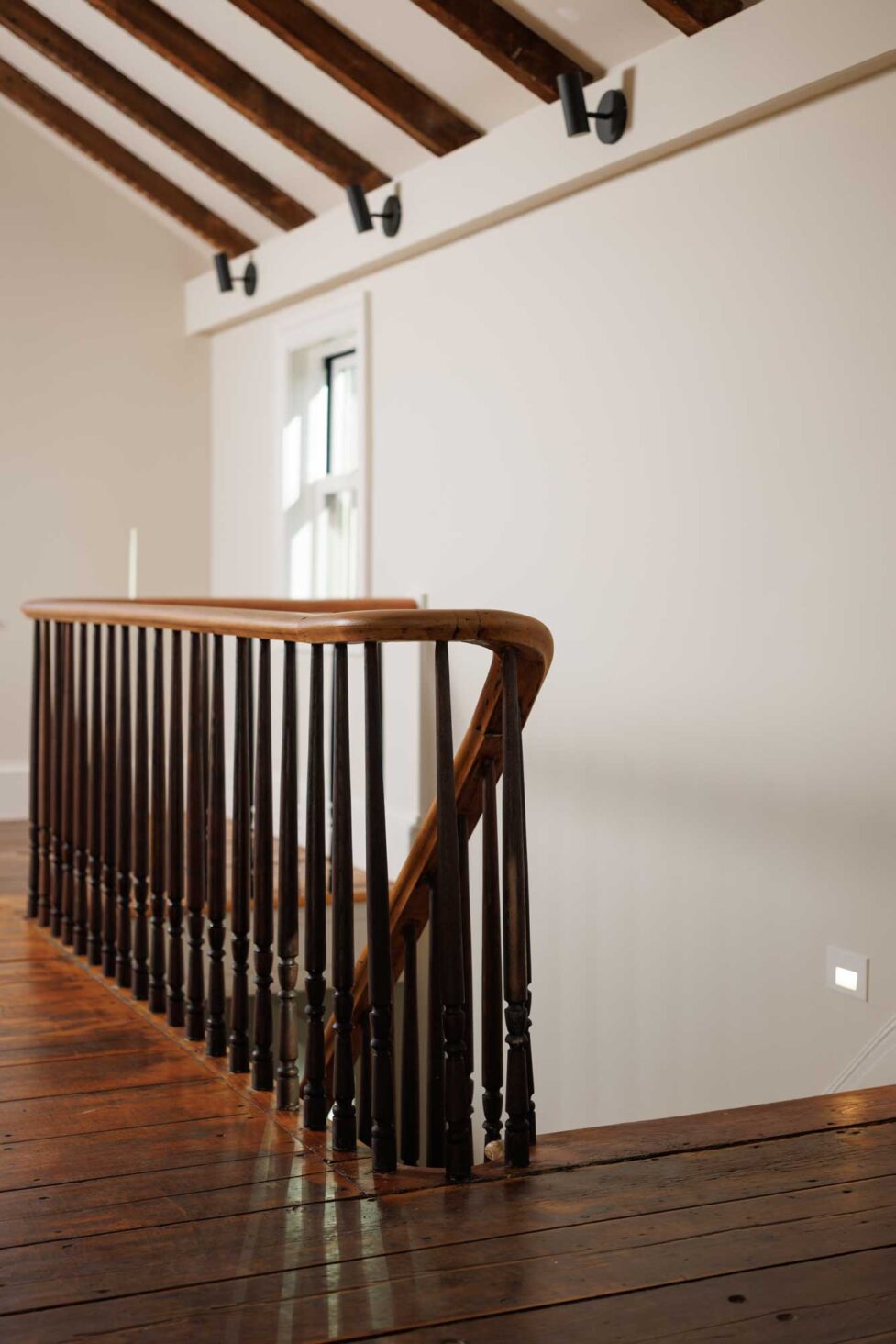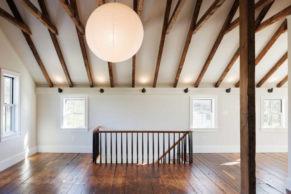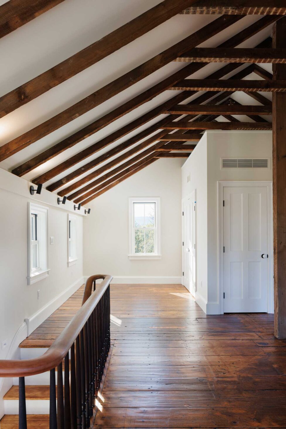 Our design for the interiors blends modern and historic details. We emphasized the generous ceiling heights on the first floor with playful crown moldings; created bathrooms that employ a romantic material palette of 1920s subway tile, porcelain, and chrome; and framed a new roof which allowed us to expose the historic rafters and collar-ties on the second floor while meeting stringent modern energy code requirements. And that water-filled basement? Well, we lifted the entire house twenty feet into the air so that we could demolish the crumbling stacked-stone foundation and pour a new one, complete with water-proofing and foundation drains. This project has been a labor of passion, invention, and creativity and we’re thrilled to imagine that this grand old house will be around for another two hundred years.